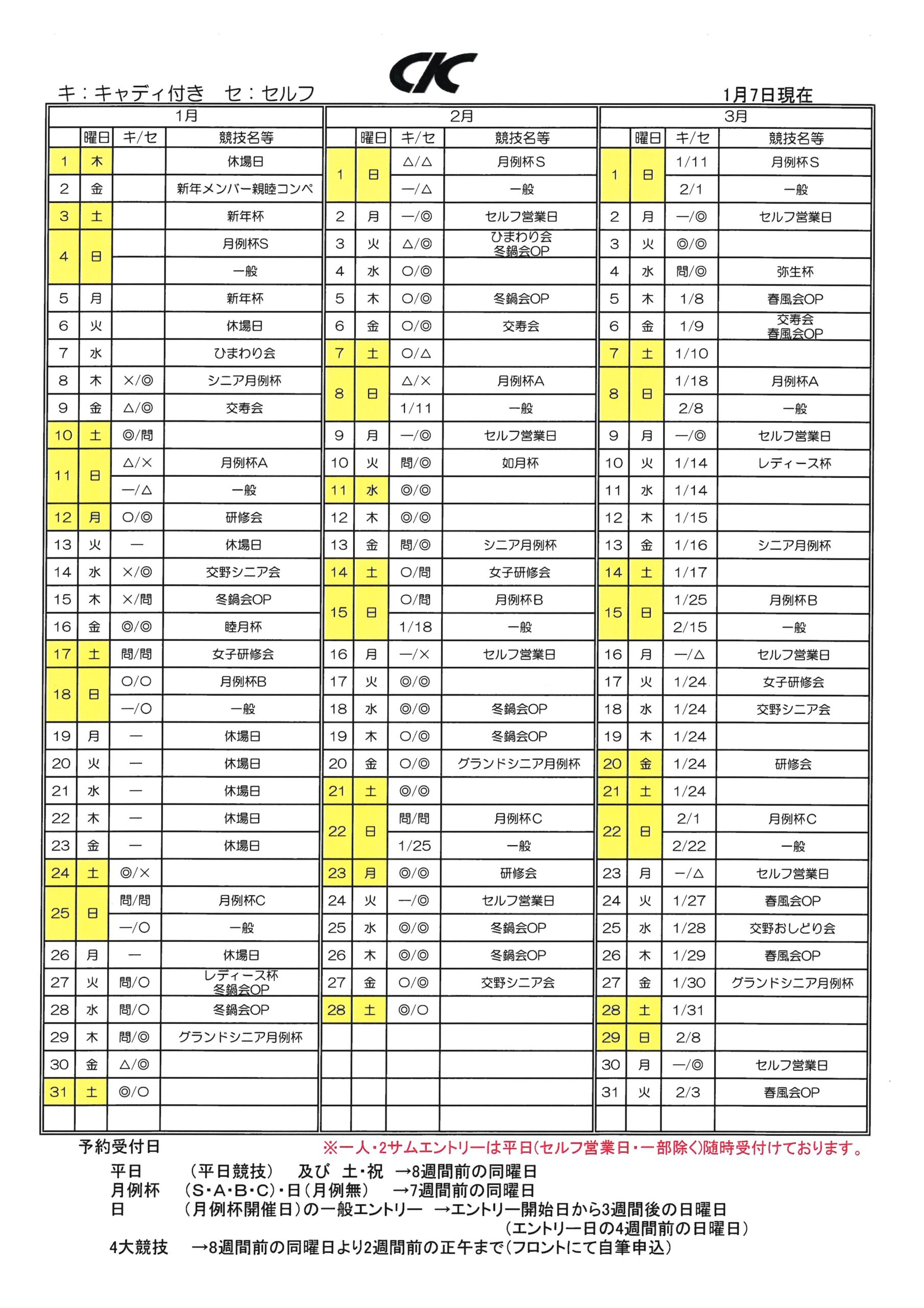 3ヶ月予約状況表